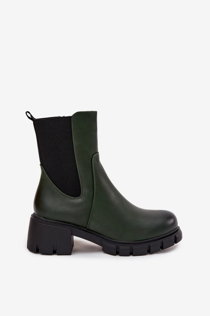 Tmavě zelené kotníkové boty Kyra z eko‑kůže s blokovým podpatkem (~ 5 cm) pro stabilní chůzi. Mají boční zip pro snadné nazouvání a univerzální design vhodný pro každodenní nošení.