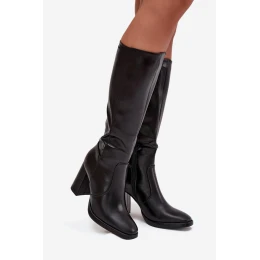 Dámské kotníkové boty Lyvella na sloupkovém podpatku z eko‑kůže – černé