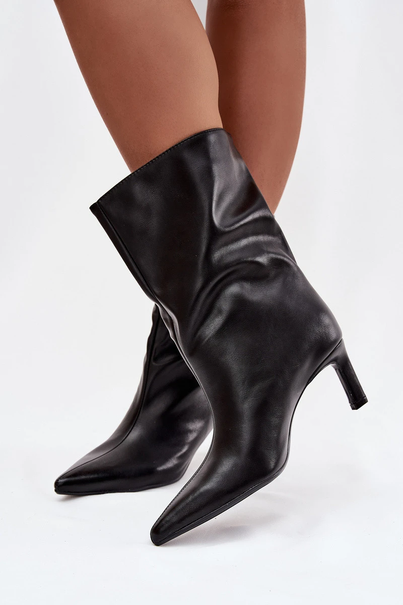 Dámské kotníkové boty na jehlovém podpatku z eko kůže Norell – černé