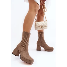 Dámské kotníkové boty na masivním podpatku a platformě tmavě béžové Adelles