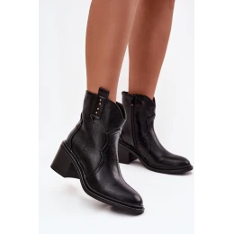 Dámské kotníkové boty na masivním podpatku z eko kůže Iverly – černé