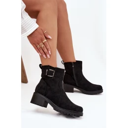 Boty dámské z eko kůže, praktické a pohodlné na každodenní nošení. Osazeny na stabilním nízkém podpatku typu klinek pro jistý krok. Model se zapínáním na zámek a ozdobnou přezkou, která dodává stylový akcent. Vnitřek boty je zateplený, zajišťuje teplo a komfort v chladnějších dnech. Ideální kombinace pohodlí a elegance.
