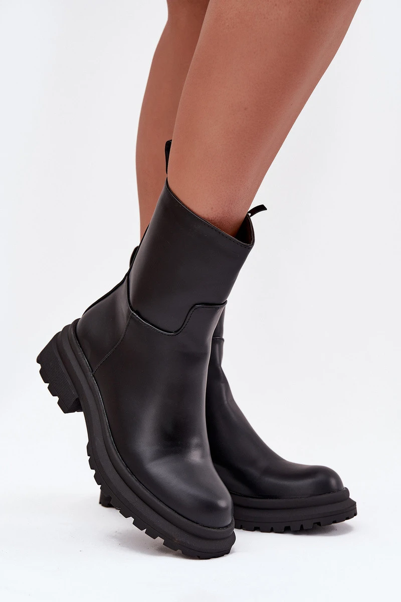 Dámské kotníkové boty na platformě a nízkém podpatku černé Levira