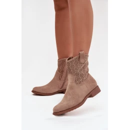 Dámské kotníkové boty na ploché podrážce s perforovaným vzorem S.Барски HY52-530 béžové