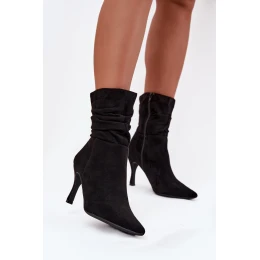 Dámské Kotníkové Boty Na Podpatku S Vrásčeným Nárt Eko Semiš Zámek Černé Ulisse