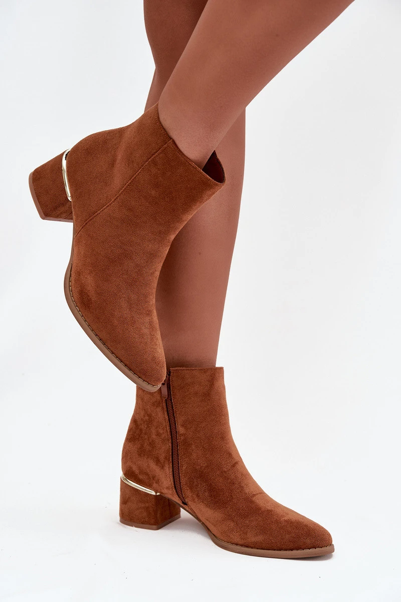 Dámské kotníkové boty na podpatku se zlatým prvkem zateplené Camel Nolessa