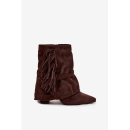 Model je ozdoben třásněmi a tenkými pásky se zlatými přezkami, což vytváří módní akcent a dodává botám moderní a výrazný vzhled. Boty se skvěle hodí jak k casual outfitům, tak k elegantnějším kombinacím, přinášejí do stylizací originalitu a šmrnc.