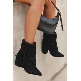 Botky dámské na sloupku kombinují elegantní vzhled s moderními detaily. Model je z eko kůže, osazený stabilním sloupkovým podpatkem, který poskytuje pohodlí při chůzi. Cholevku zdobí třásně a zlaté přezky, které dodávají botám výrazný a stylový akcent. Boční zip zajišťuje snadné obouvání a optimální přizpůsobení chodidlu. Skvěle se hodí k casualovým i elegantnějším outfitům.