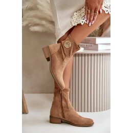 Dámské Kotníkové Boty Na Zip S Ozdobným Detalem Eko Semišové Béžové Lerioria