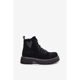 Dámské kotníkové boty Nariri s brokátovým srdcem – černé
