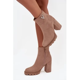 Dámské boty z eko semiše jsou elegantní volbou pro ženy, které ocení styl a pohodlí. Jsou na stabilním podpatku ve tvaru sloupku, který zajišťuje komfort nošení a jemně zvýrazňuje siluetu. Zaoblené špičky jim dodávají klasický charakter a praktický zip usnadňuje oblékání a svlékání. Přitahuje pozornost lesklý detail ve tvaru písmene V umístěný na boku holínky, který přidává originalitu a módní akcent. Tento model je ideální jak pro každodenní, tak elegantní stylizace. Při výběru velikosti se řiďte tabulkou velikostí.