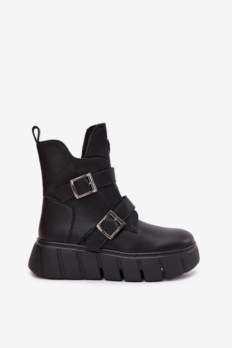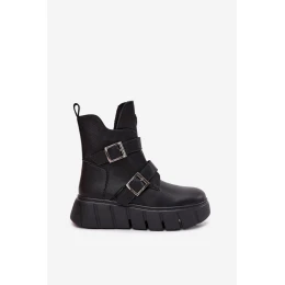 Dámské kotníkové boty s pásky a přezkami Vinceza – černé