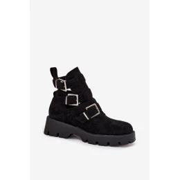 Dámské kotníkové boty s pásky a stříbrnými přezkami Helisse - černé