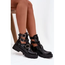 Botky dámské z lakované eko kůže kombinují moderní vzhled s pohodlným nošením. Model je zdoben pásky se stříbrnými přezkami, které dodávají botám elegantní a stylový akcent. Stabilní podpatek zajišťuje pohodlí při chůzi, boční zip usnadňuje obouvání a přizpůsobení bot chodidlu. Skvěle se hodí k casualovým i elegantním outfitům.
