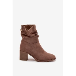 Dámské kotníkové boty s řasením na sloupkovém podpatku S.Barski – hnědé