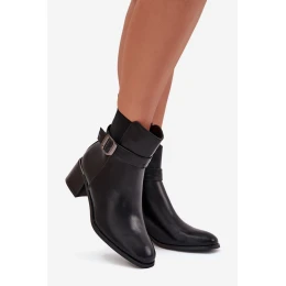 Dámské kotníkové boty Sylira na sloupku s páskem a přezkou – černé
