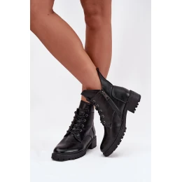Dámské zateplené botky Vinceza v černé barvě. Mají blokový podpatek (~ 4 cm), kombinaci šněrování a bočního zipu pro lepší padnutí a pohodlí. Vnitřek je zateplený měkkým materiálem, což je ideální volba pro chladnější období.