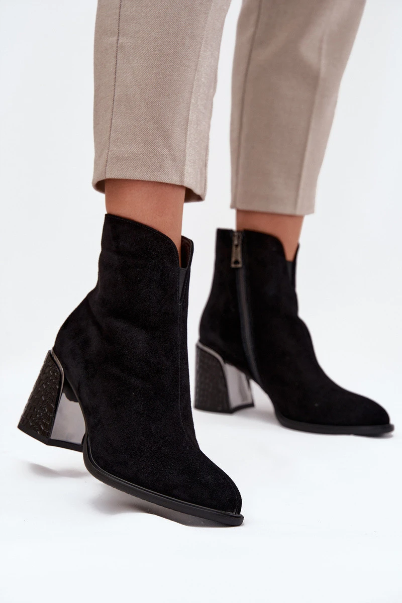 Dámské kotníkové boty Vinceza na sloupku s tlačeným vzorem – černé