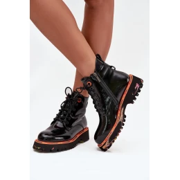 Dámské kotníkové boty z lakované přírodní kůže s izolací Artiker 57C0061 Černé
