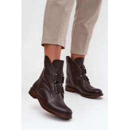Dámské kotníkové boty z pravé kůže na ploché podešvi Zazoo 3842 čokoládové