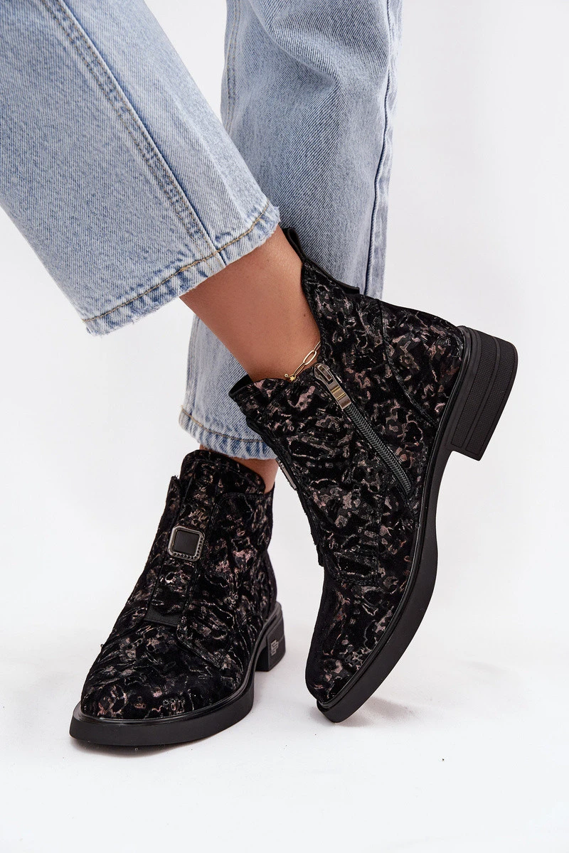 Dámské kotníkové boty z pravého semiše na nízkém podpatku – černo‑hnědé D&A