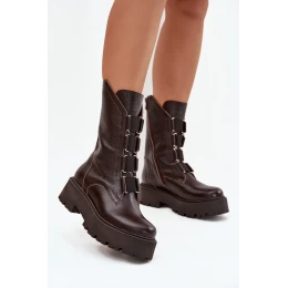 Dámské kotníkové boty z přírodní kůže na platformě Zazoo 3795 Čokoládové