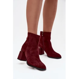Dámské kotníkové boty z přírodní semišové kůže na podpatku vyhřívané D&A CR52-718 bordó