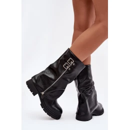 vyhrnutá cholewka s přezkami → módní detail a výrazný look