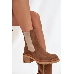 Tmavě béžové zateplené boty Zoralia z eko‑semiše s blokovým podpatkem (cca 5 cm) pro stabilní chůzi. Mají boční zip pro snadné nazouvání a měkké zateplení uvnitř, které zajišťuje teplo během chladných dní. Elegantní design se hodí pro každodenní nošení i do formálnějších outfitů.