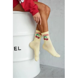 Žluté dámské kotníkové ponožky CHERRIES s motivem třešní jsou měkké, pohodlné a ideální pro každodenní nošení. Kvalitní materiál poskytuje pocit komfortu po celý den a dobrou prodyšnost. Hravý motiv třešní dodává ponožkám veselý a originální vzhled.