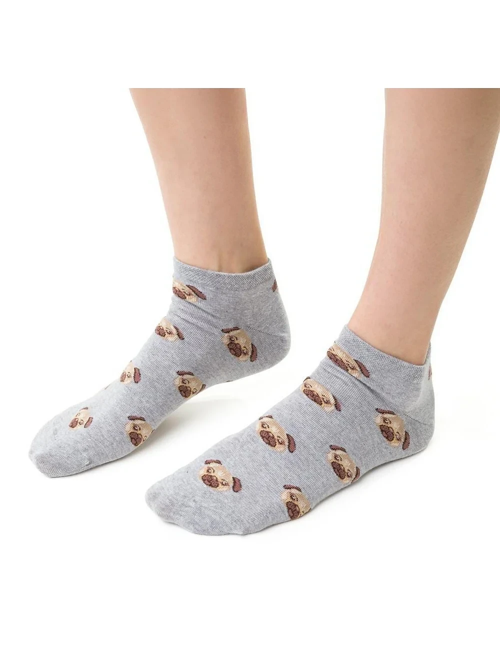 Dámské kotníkové ponožky s přídavkem elastických vláken. Mají nestahující lem. Ozdobené jsou různými vzory.