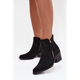 Dámské kotníkové boty ve stylu kovbojky od značky S.Barski. Vyrobené z vysoce kvalitních materiálů, vypadají elegantně a přitahují pozornost detaily. Model je umístěn na stabilním, zúženém podpatku typu sloupek, který zajišťuje pohodlí při chůzi a zároveň jemně zeštíhluje postavu. Mandlové špičky dodávají botám ženský charakter a zdůrazňují elegantní linii nohy. Boty mají praktické zapínání na zip, které usnadňuje jejich obouvání a sundávání, a doplňkový ozdobný zip plní funkci stylového detailu, který celému modelu dodává moderní a originální vzhled. Ideální obuv pro volnočasové styly i outfity inspirované boho módou. Při výběru velikosti se řiďte tabulkou velikostí.
