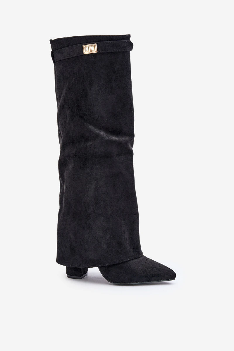 Dámské Kozačky Eko Semišové S Otočeným Svrškem Na Klíně Černé Bralise