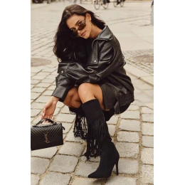 Dámské kozačky na jehlovém podpatku s třásněmi Isalune – černé