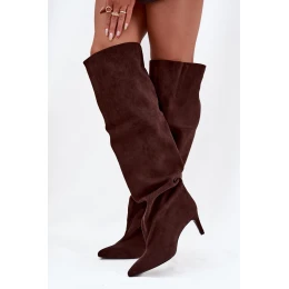 Dámské kozačky na jehlovém podpatku, vsuvné Mavilla – čokoládové