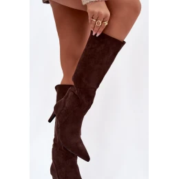 Elegantní dámské kozačky Arelisse z eko semiše v čokoládovém odstínu, s teplou podšívkou pro komfort v chladném počasí. Jehlový podpatek dodává ženský a sofistikovaný vzhled, uzavřená špička a pohodlná stélka zajišťují celodenní pohodlí.