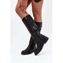 Dámské kozačky na nízkém podpatku se zdobným detailem Arvessa – černé