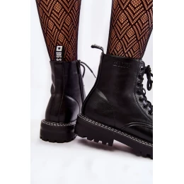 Klasické, dámské kozačky značky Big Star! Byly vyrobeny z eko kůže. Mají klasické šněrování a zip na boku svršku, který usnadňuje obouvání. Podrážka s nášlapem je vyrobena z plastu a prošita nití. Navíc je zesílená pata. Tyto kozačky se budou skvěle hodit nejen ke kalhotám, ale také k šatům nebo sukni. Při výběru velikosti použijte tabulku velikostí.