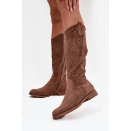 Dámské kozačky na ploché podrážce s perforovaným vzorem S.Barski HY52-531 hnědé