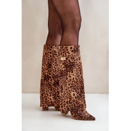 Dámské Kozačky Na Podpatku Před Kolena Leopardí Hnědé Portora