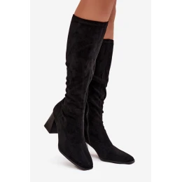 Stylové dámské kozačky vyrobené z měkkého eko semiše kombinují komfort a módní vzhled. Stabilní sloupkový podpatek zajišťuje pohodlí při nošení, zatímco jemně zaoblená špička dodává botám subtilní charakter.