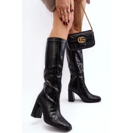 Dámské kozačky na vysokém podpatku s ozdobným ražením, černá Vabaria