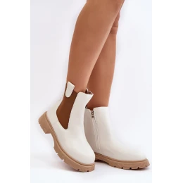 Dámské kotníkové boty s nízkým kotníkovým límcem. Vyrobené z ekokože. Umístěné na plochém podpatku a tlusté podrážce. Na límci elastické vložky. Zaoblené špičky. Model se zapíná po straně na zip. Zadní část je zpevněná. Tento klasický střih si snadno sladíte s každým podzimním outfitem! Při výběru velikosti se řiďte tabulkou velikostí.