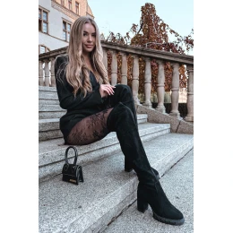 Dámské kozačky nad koleno na klíně ekologická semišová černá Tahlina