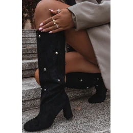 Dámské kozačky s izolací na podpatku s ozdobnými detaily černé Lucinda