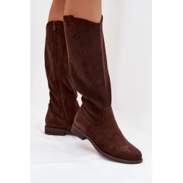 Dámské kozačky s krajkovým vzorem na nízkém podpatku S.Barski HY61-8022 Čokoládové