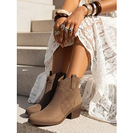 Dámské kozačky s prolamovaným svrškem na nízkém podpatku béžové barvy FashionStreet ZY1429