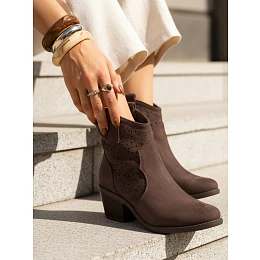 Dámské kozačky s prolamovaným svrškem na nízkém podpatku hnědé FashionStreet ZY1430