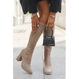 Dámské kozačky vyrobené z měkkého eko semiše. Stabilní podpatek ve tvaru sloupu zajišťuje pohodlí při nošení a jemně zaoblené špičky dodávají celku jemný charakter. Model na zip. Přiléhající lýtka zdobená švy krásně zvýrazňují linii nohou, čímž vytvářejí štíhlou a ženskou siluetu. Vhodné jak pro každodenní, tak i elegantní stylizace s šaty a sukněmi. Při výběru velikosti se řiďte tabulkou velikostí. Při výběru velikosti se řiďte tabulkou velikostí.