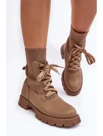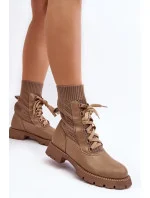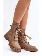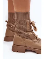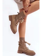Dámské kozačky se šněrováním a ponožkou světle béžové Gentiana
